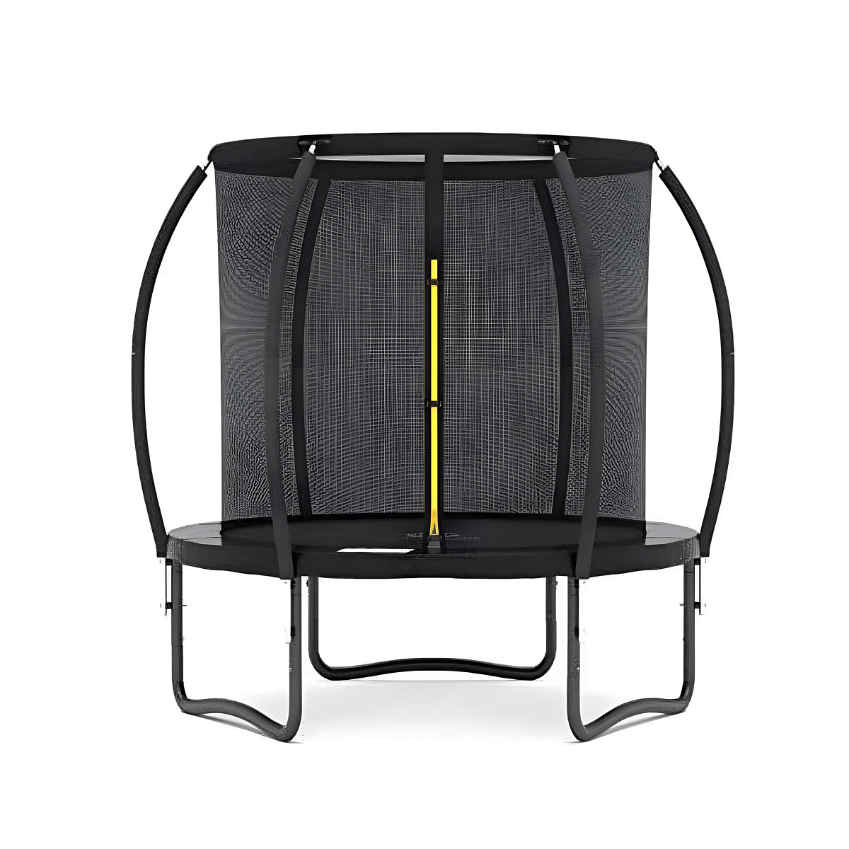 Защитная сетка обеспечивает безопасность ребенка во время прыжков, предотвращает падения. Металлические стойки каркаса покрыты мягким материалом и расположены на расстоянии от прыжкового полотна. Попасть внутрь можно с помощью двустороннего замка-молнии.
