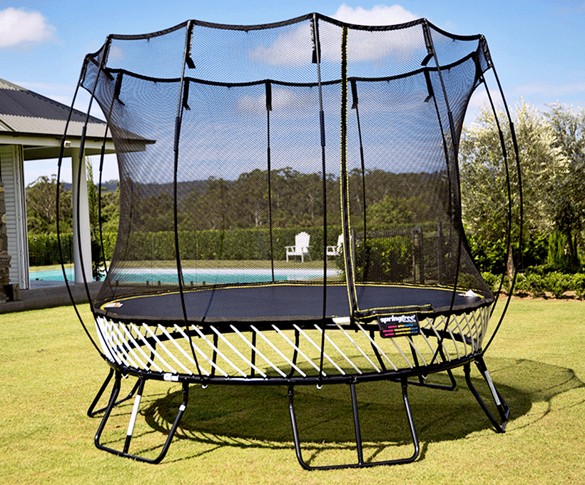Сеть безопасностиСеть безопасности изготовлена также из высокопрочного стабилизированного полипропилена. Ткется по лицензии и эксклюзивно для Springfree Trampoline на основе тех же технологий, что и рыболовные сети — каждая ячейка сети самостоятельно зафиксирована и при повреждении одной ячейки дальнейшие не «расползаются». Размеры ячеек подобраны таким образом, чтобы пальчики даже самых маленьких детей не могли проникнуть и застрять в них. Сеть растягивается, эффективно улавливая прыгуна, а также обладает амортизирующими свойствами — возвращая ребенка в центр батута.