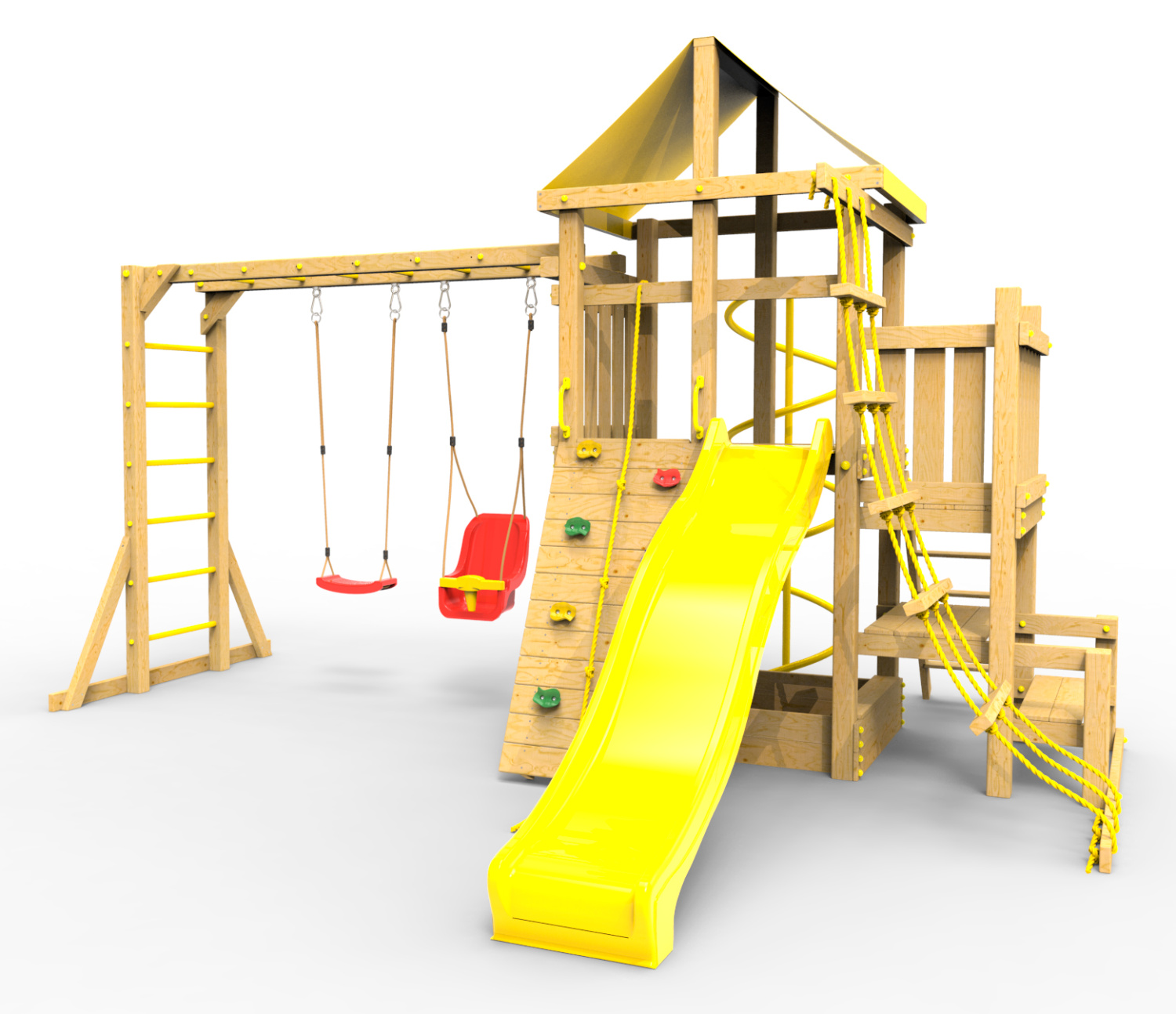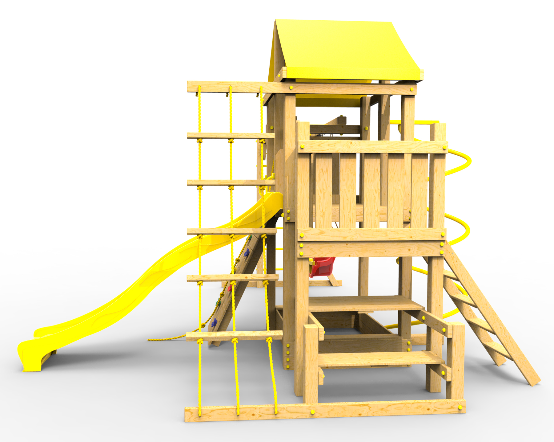 ● деревянная крыша ● трап 2м с канатом ● поручни для лестницы ● диван на цепях двухместный ● столик в песочницу