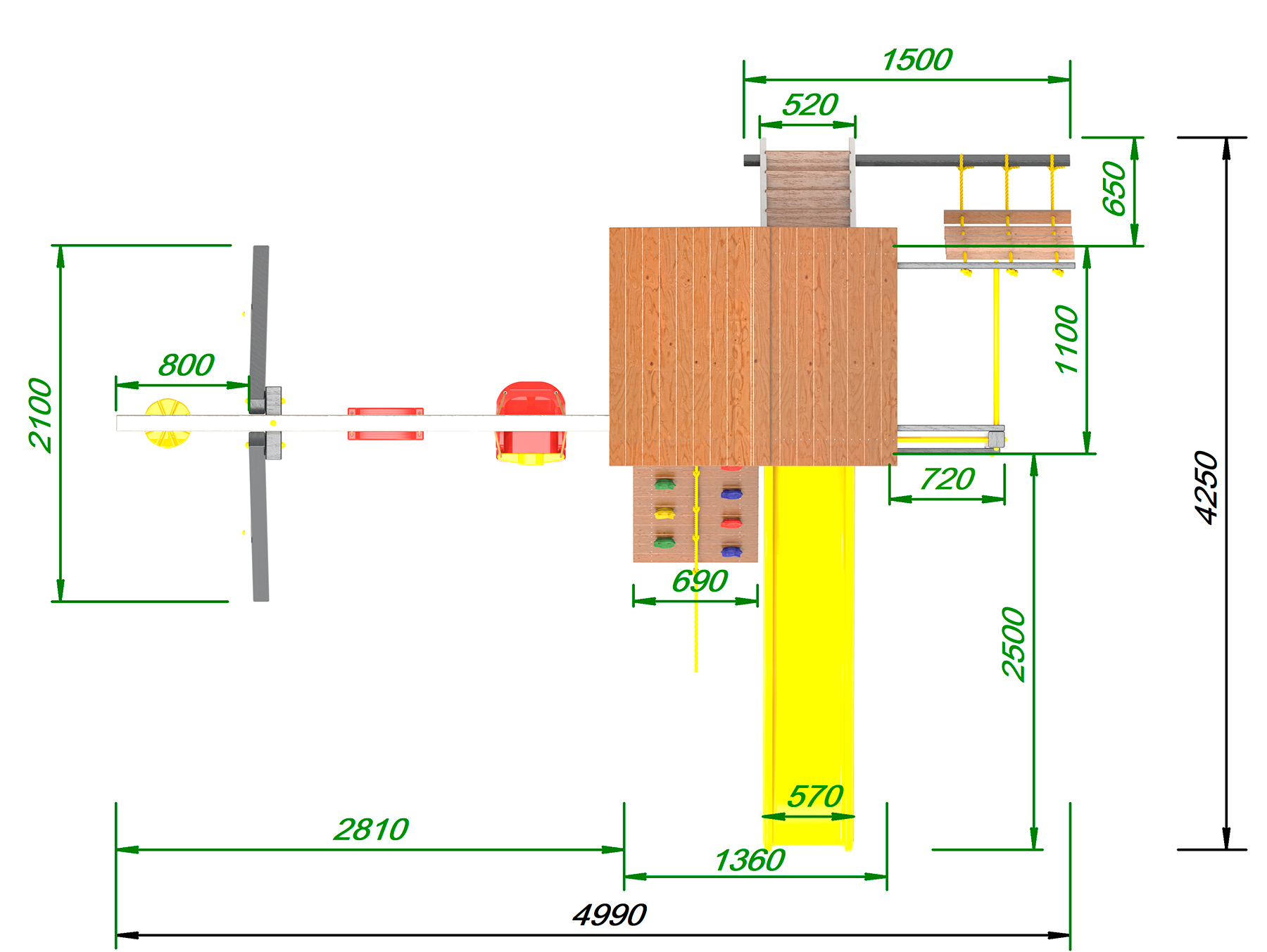 Обращаем Ваше внимание, что фактический цвет детской площадки может отличаться от представленных фото на сайте. Специфика окраски нетоксичными пропитками и красителями допускает отклонения в цветовой гамме отгружаемых изделий. Также обратите внимание, что фактический цвет может отличаться из-за цветопередачи устройства на котором Вы смотрите фото.