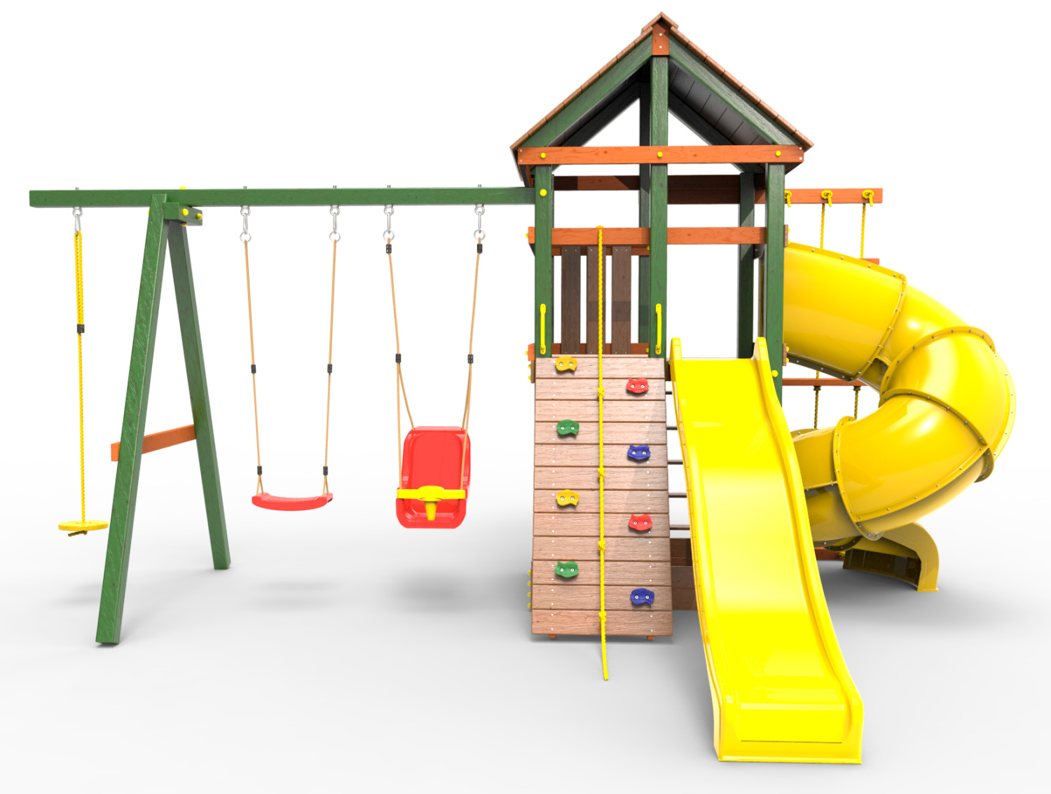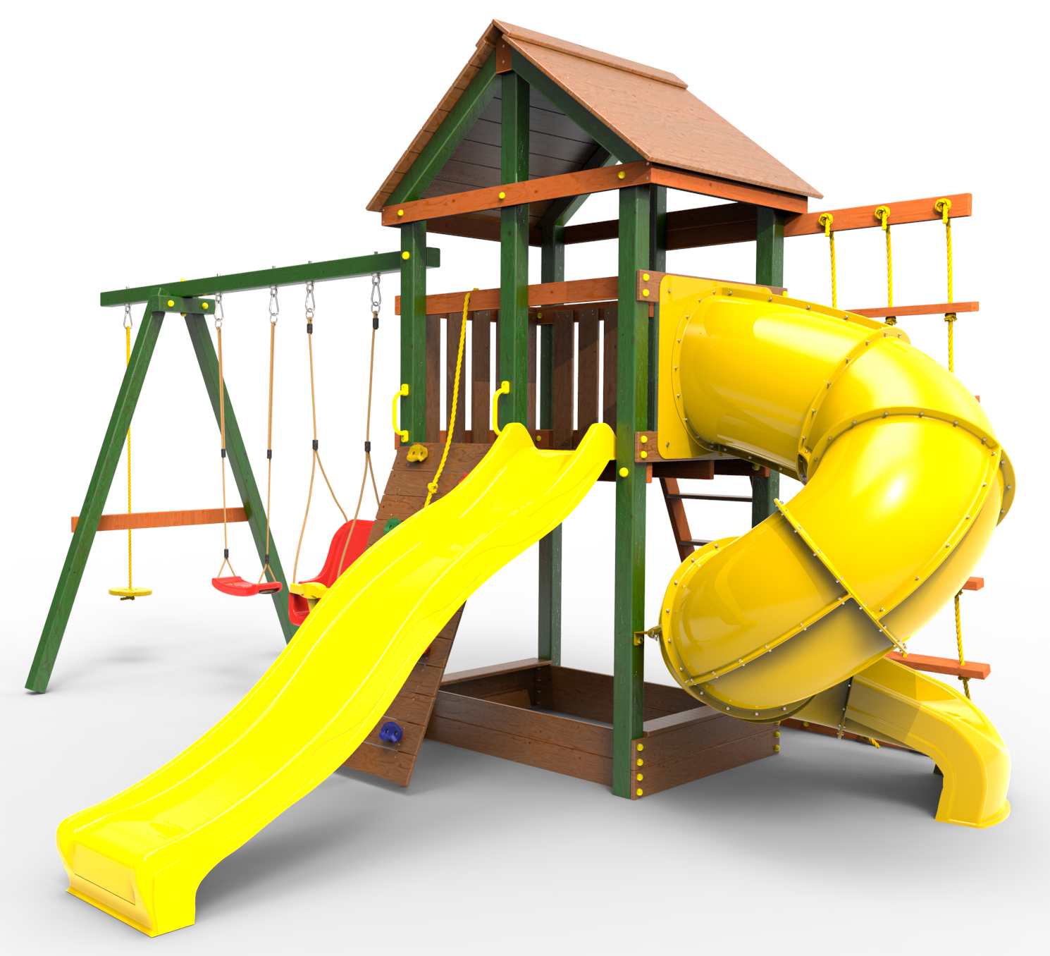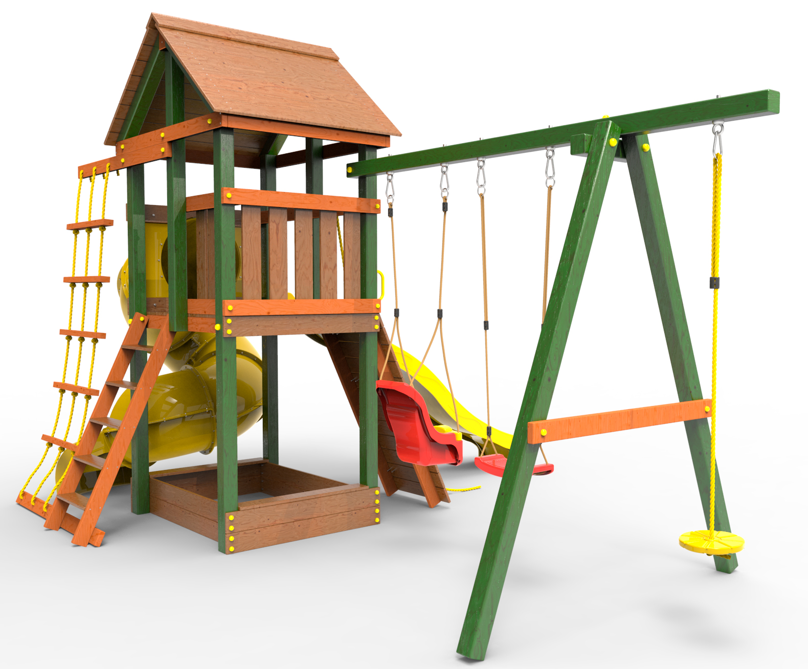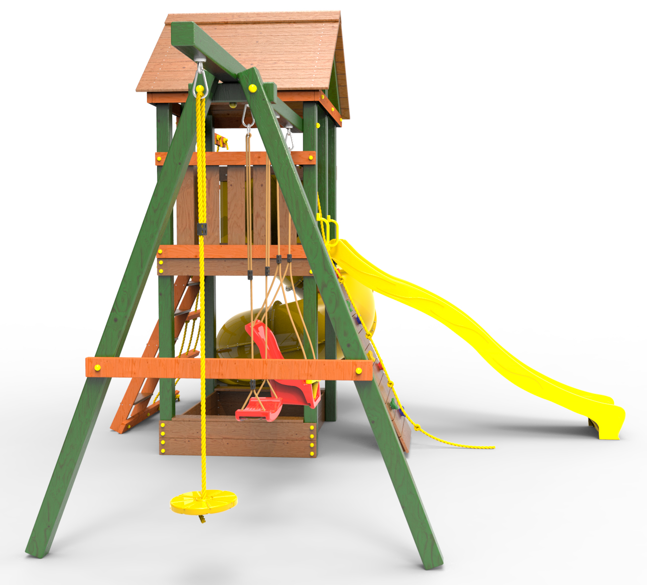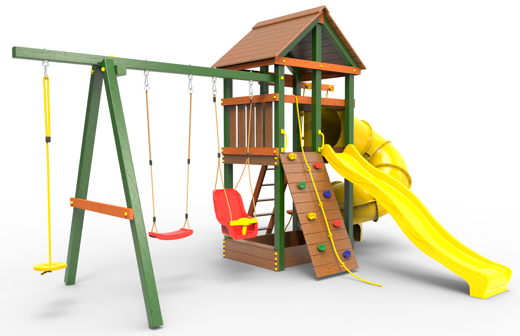 Обращаем Ваше внимание, что фактический цвет детской площадки может отличаться от представленных фото на сайте. Специфика окраски нетоксичными пропитками и красителями допускает отклонения в цветовой гамме отгружаемых изделий. Также обратите внимание, что фактический цвет может отличаться из-за цветопередачи устройства на котором Вы смотрите фото.