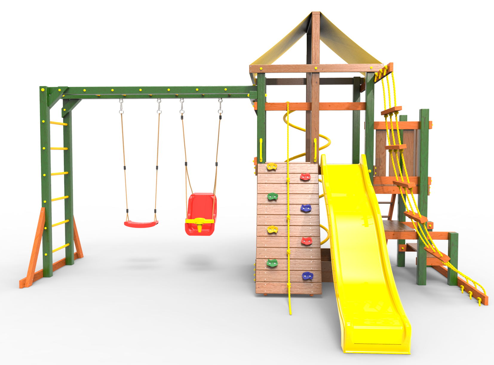 Обращаем Ваше внимание, что фактический цвет детской площадки может отличаться от представленных фото на сайте. Специфика окраски нетоксичными пропитками и красителями допускает отклонения в цветовой гамме отгружаемых изделий. Также обратите внимание, что фактический цвет может отличаться из-за цветопередачи устройства на котором Вы смотрите фото.
