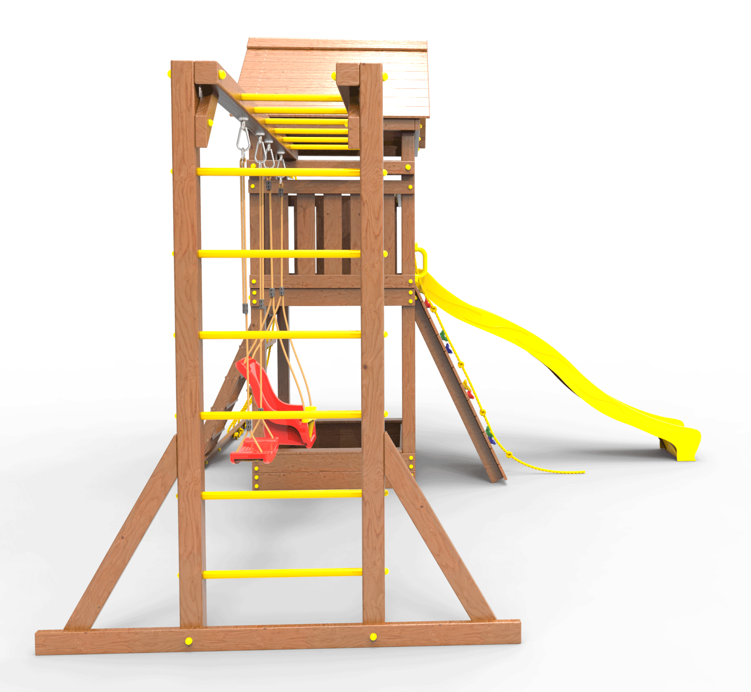 Обращаем Ваше внимание, что фактический цвет детской площадки может отличаться от представленных фото на сайте. Специфика окраски нетоксичными пропитками и красителями допускает отклонения в цветовой гамме отгружаемых изделий. Также обратите внимание, что фактический цвет может отличаться из-за цветопередачи устройства на котором Вы смотрите фото.