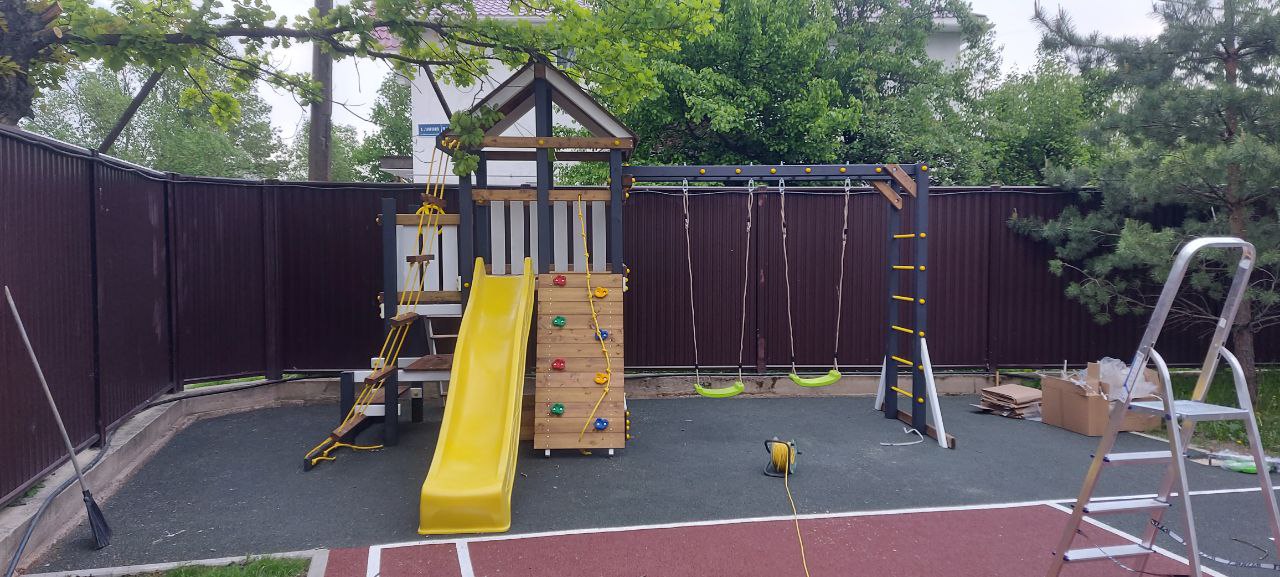Обращаем Ваше внимание, что фактический цвет детской площадки может отличаться от представленных фото на сайте. Специфика окраски нетоксичными пропитками и красителями допускает отклонения в цветовой гамме отгружаемых изделий. Также обратите внимание, что фактический цвет может отличаться из-за цветопередачи устройства на котором Вы смотрите фото.