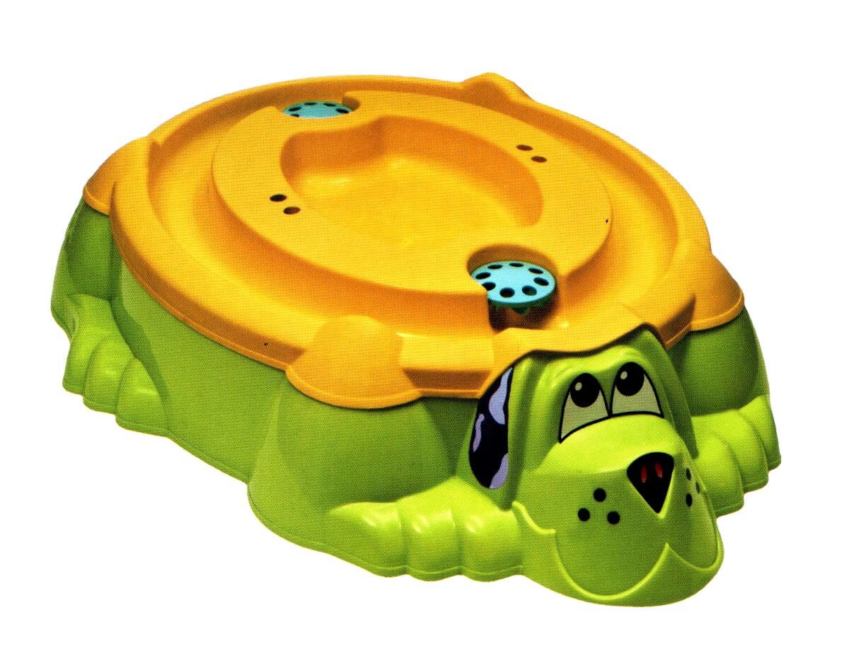 Обаятельный песик прилег на зеленом газоне… Поиграем? Эта оригинальная песочница может стать любимым местом игр Ваших малышей. Внутри песочницы предусмотрены сиденья для двоих малышей. Песочницу-собачку также можно использовать и в качестве детского бассейна. Благодаря компактным размерам песочницу можно использовать даже на небольшой площади.