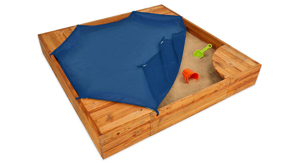 Длина стороны составляет 1,5 метра, что позволяет играть нескольким малышам одновременно, с удовольствием строить замки из песка или делать куличики.