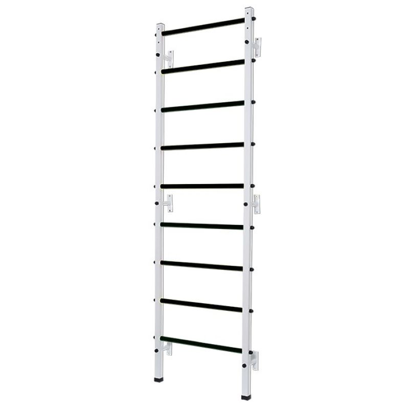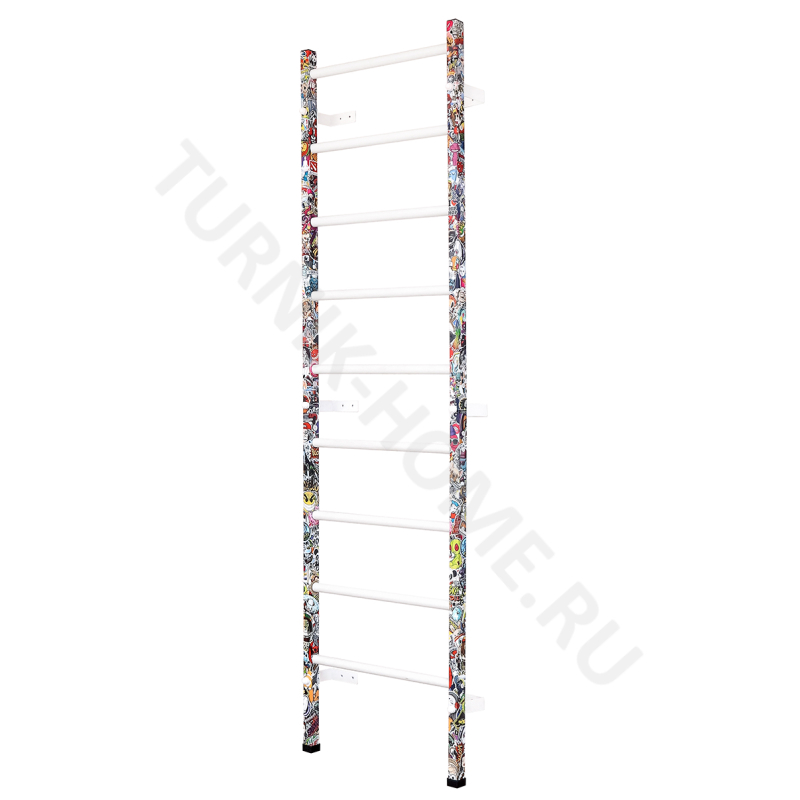 Новинка! Теперь чрезвычайно выносливый стальной профиль выполнен в современном дизайне Стикербомбинг! В сочетании с белыми ступенями и крепежной фурнитурой металлическая шведскую стенка становится не только многофункциональным тренажером, но и изюминкой интерьера.