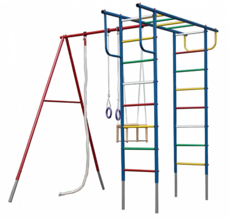 Многоопорный дачный спортивный комплекс, закрепляется путем бетонирования опор в подготовленную грунтовую площадку.